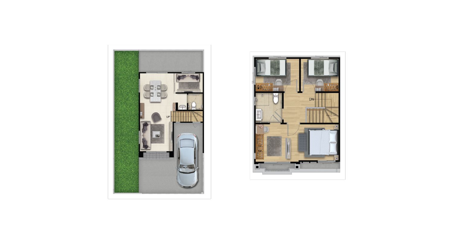- บ้านหน้ากว้าง 5.7 เมตร / จอดรถได้ 1 คัน