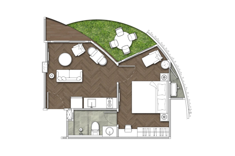 จุดเด่นของแบบห้อง 1 Bedroom with private garden