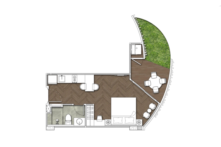 สกายบาร์, ห้องซาวน่า, ห้องสตรีม, พื้นที่โยคะ, สปา, มินิมาร์ท, เลานจ์, ร้านอาหาร และลานอเนกประสงค์