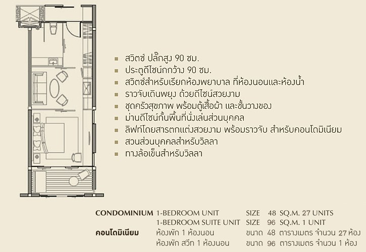 * แต่ละยูนิตได้รับการออกแบบและการจัดวางส่วนต่างๆ ของ ห้องนอน ห้องน้ำ ห้องครัว และห้องนั่งเล่นได้อย่างเหมาะสมและลงตัวสำหรับผู้สูงวัย