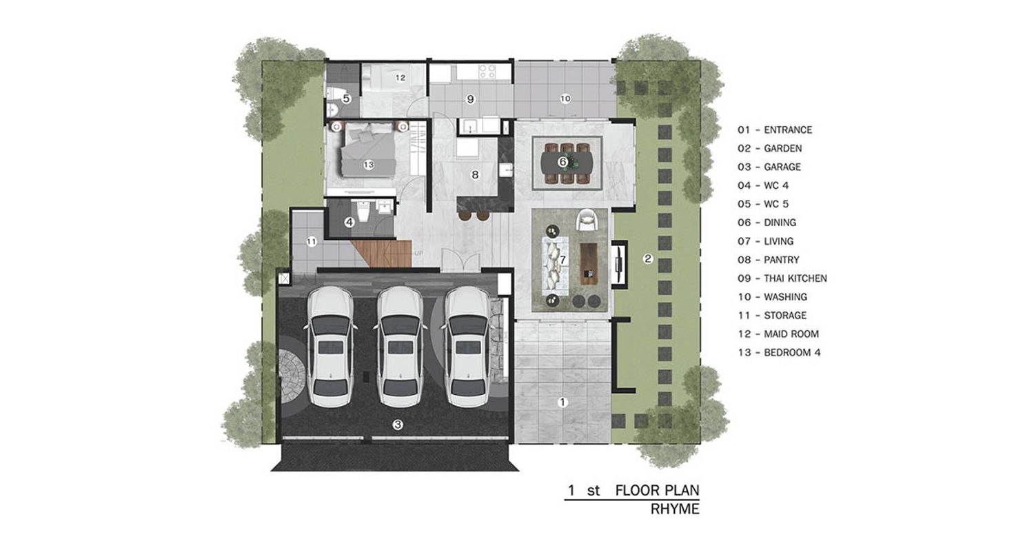 บ้านเดี่ยวขนาดกลาง ที่ออกแบบหลังคาให้เป็นผืนเดียวและออกแบบโถงทางเข้าที่ทำให้บ้านขนาดกลางดูใหญ่และส่งเสริมบ้านให้ดูหรูหราขึ้น ซึ่งมีมาตรฐานเท่ากับบ้านเดี่ยวขนาดใหญ่ 4 Marter Bedroom มีครัวฝรั่ง ครัวไทย รวมถึงห้องแม่บ้านในตัว