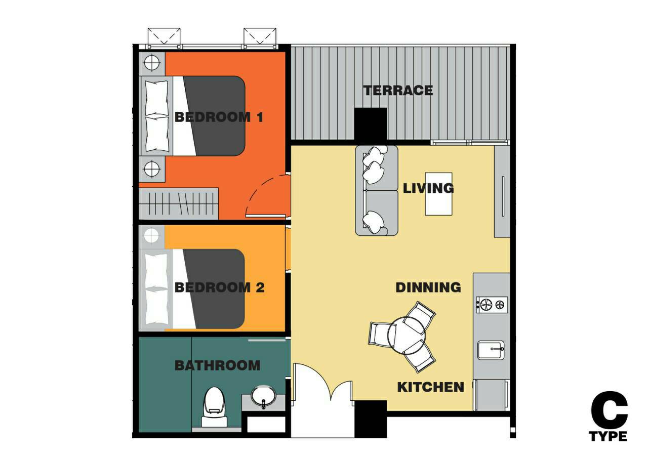* ห้องชุดสุดสบายแต่งด้วยเฟอร์นิเจอร์ครบครันตามแบบทันสมัย