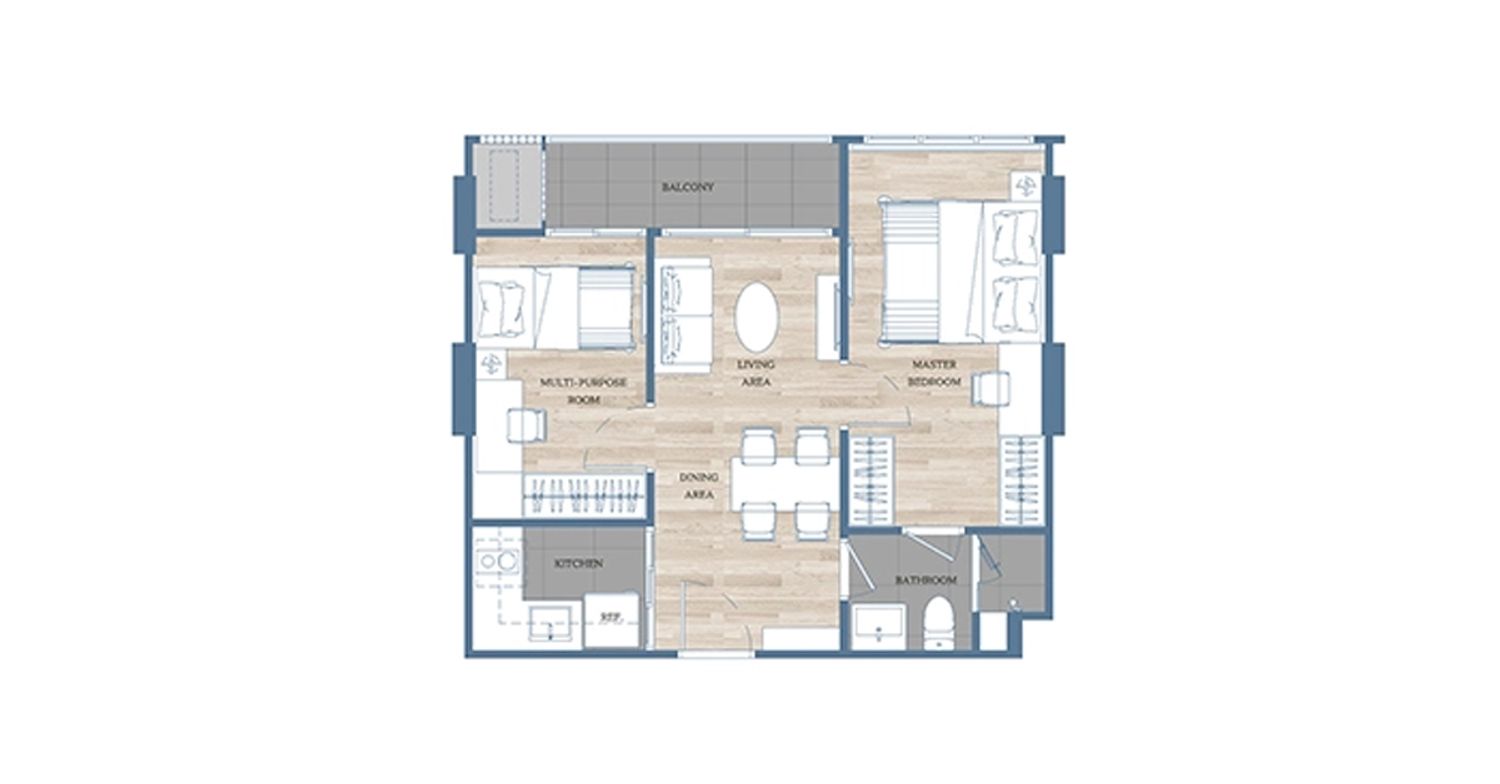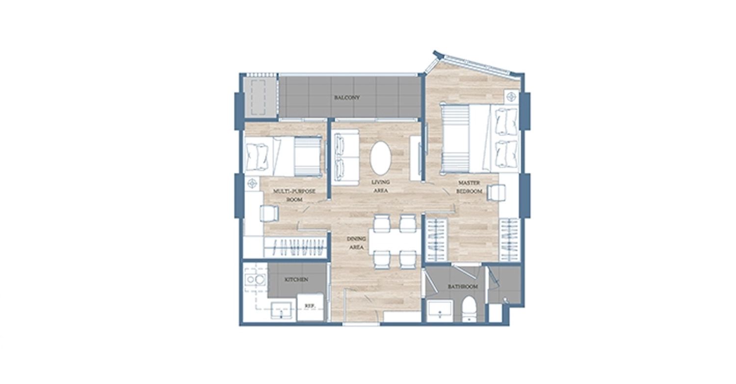 * 1 ห้องนอน 1 ห้องน้ำ 1 ห้องอเนกประสงค์ พื้นที่ใช้สอย 49.00 – 50.75 ตร.ม.