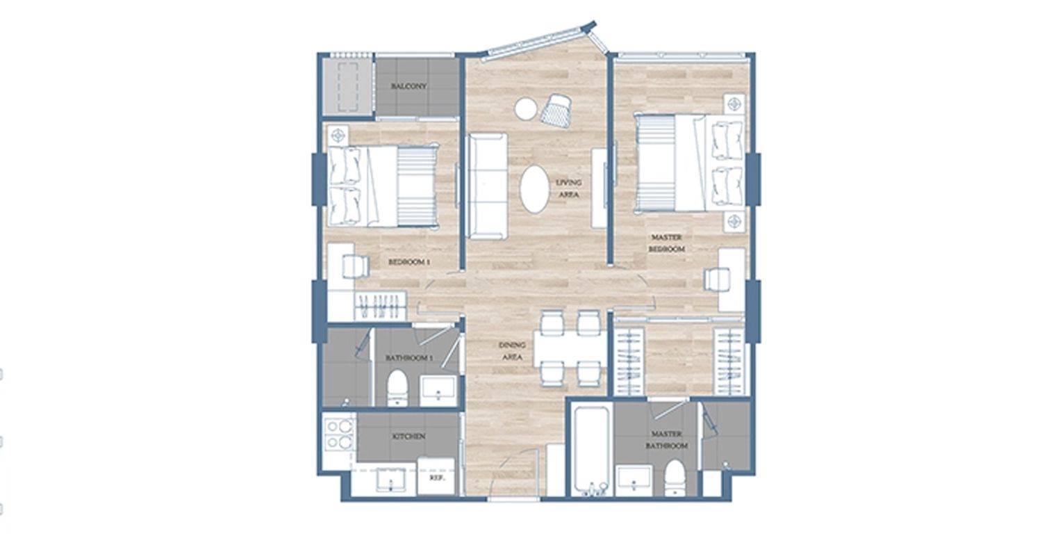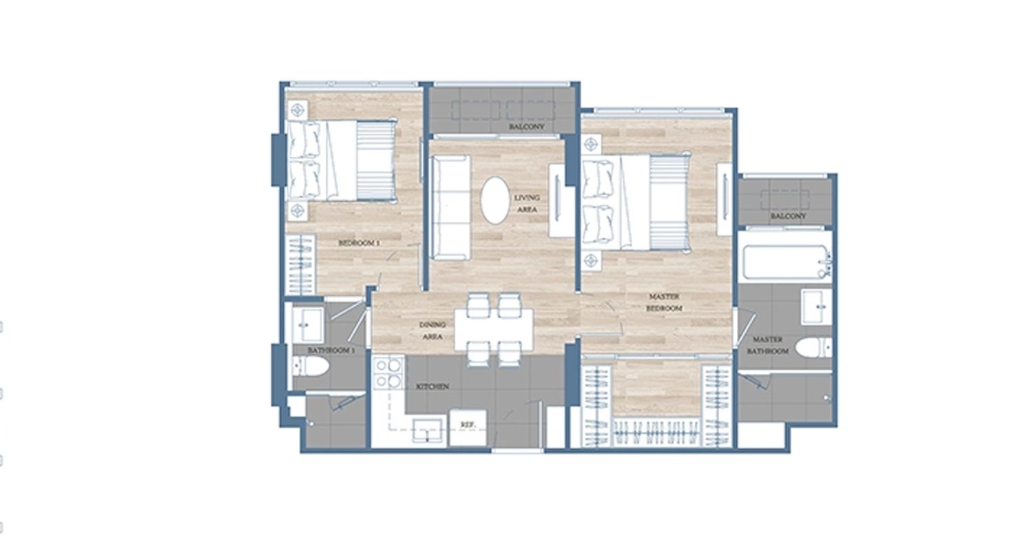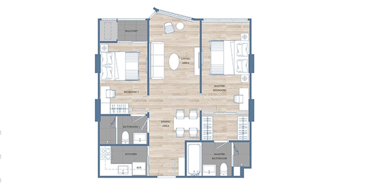 * 2 ห้องนอน 2 ห้องน้ำ พื้นที่ใช้สอย 67.00 – 73.00 ตร.ม.