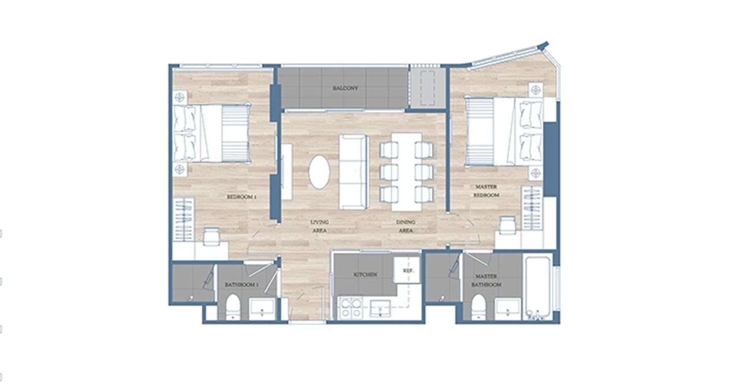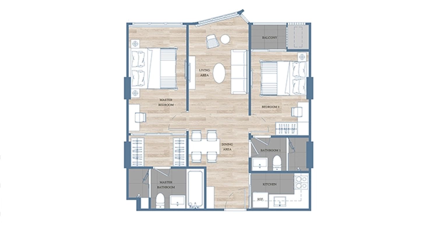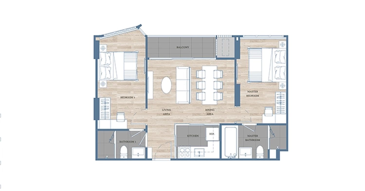 * 2 ห้องนอน 2 ห้องน้ำ พื้นที่ใช้สอย 67.00 – 73.00 ตร.ม.