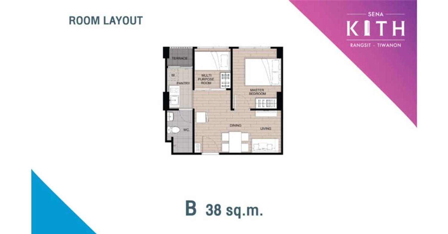 1 Bedroom Plus ในโครงการ เสนาคิทท์ รังสิต-ติวานนท์