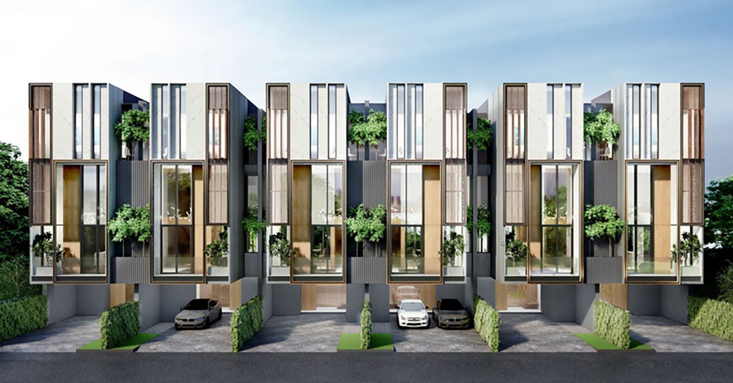 * โดดเด่นด้วยการออกแบบโดยเน้นเส้นสายแนวตั้งและพื้นที่สีเขียวทั้งภายในและภายนอกบ้าน