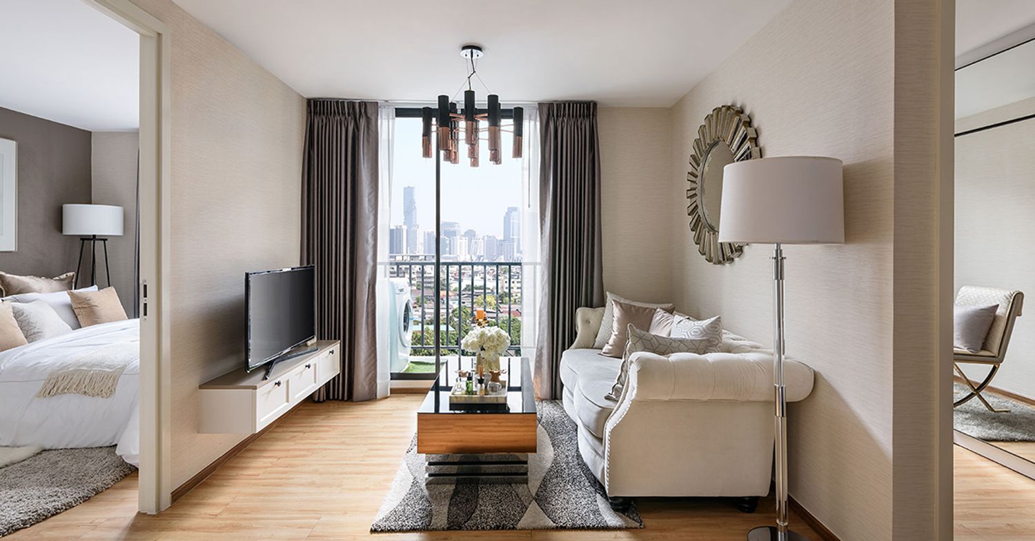 - มีเฟอร์นิเจอร์ โซฟา เตียง ตู้เสื้อผ้า Built-in ติดผ้าม่าน 2 ชั้น อย่างดี ทั้งห้องนอน และห้องรับแขก