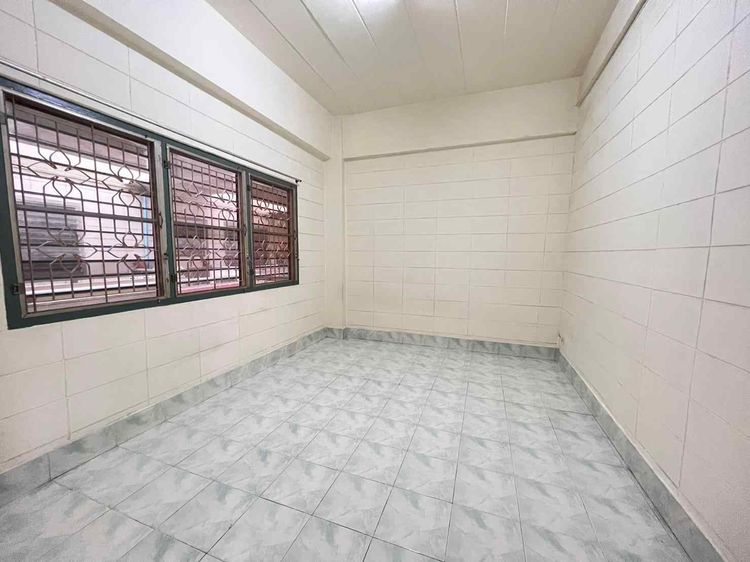 พื้นปูกระเบื้องทั้งห้อง มีที่จอดรถยนต์ส่วนกลางด้านหน้าอาคาร