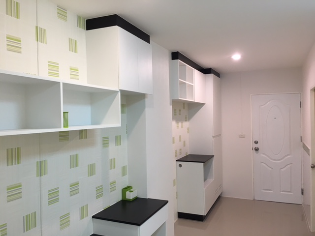 Rachada Presstige condo คอนโดรัชดาเพรสทีจ @ลาดพร้าว 48 ห้องขนาด 31-32 ตรม. 1 ห้องนอน 1 ห้องน้ำ ห้องตกแต่งใหม่ สวยมีสไตล์ พื้นปูกระเบื้องแกรนิโต้ ห้องน้ำปูหินอ่อนกั้นกระจกแยกส่วนเปียก พร้อมด้วยเฟอร์นิเจอร์บิ้วอิน (ตู้เสื้อผ้า,โต๊ะเครื่องแป้ง,ที่วางทีวี , เตียงนอนพร้อมที่นอน , โซฟา , ซิงก์ครัว , เครื่องทำน้ำอุ่น , แอร์ และตกแต่งด้วยวอลเปเปอร์ทั้งห้อง