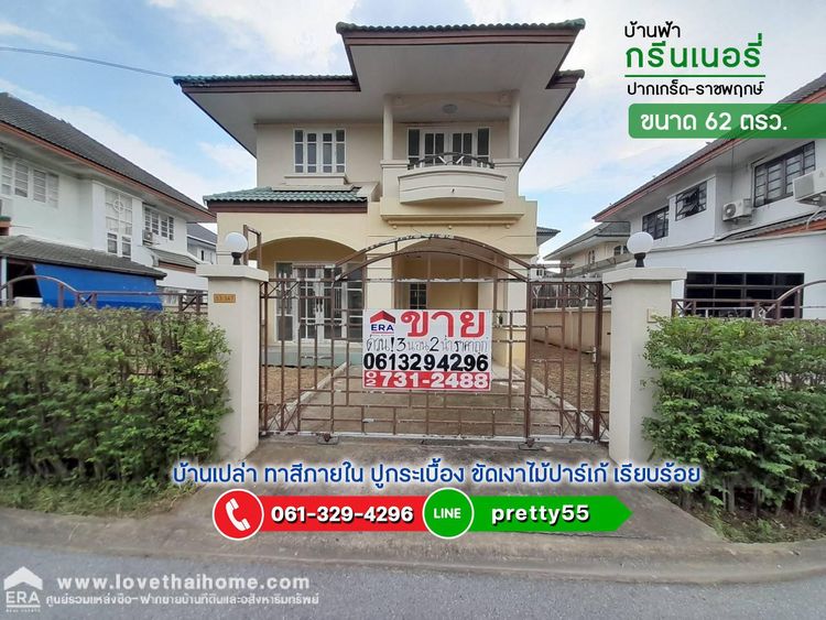 ขายด่วนบ้านเดี่ยว บ้านฟ้ากรีนเนอรี่ ปากเกร็ด-ราชพฤกษ์ ขนาด 62 ตรว. พื้นที่ใช้สอยเยอะมาก ใกล้โรบินสันราชพฤกษ์