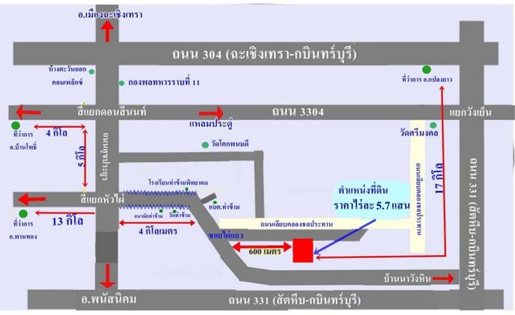 ขายถูกที่สุด ที่ดิน 4 ไร่ๆ ละ 5.7 แสน ต.ท่าข้าม อ.พนัสนิคม จ.ชลบุรี