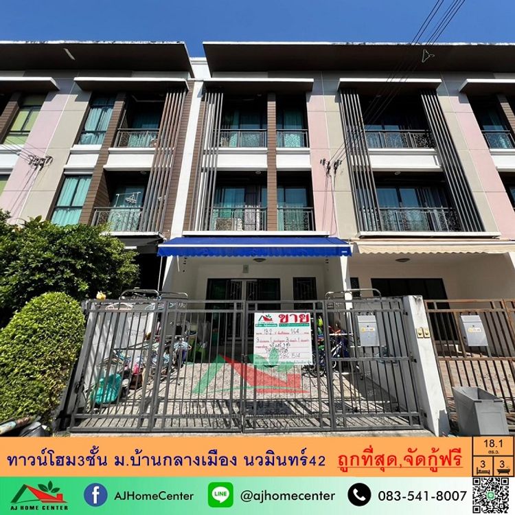 ขายถูกที่สุด3.49ล้าน ทาวน์โฮม3ชั้น 18.1ตรว. ม.บ้านกลางเมือง นวมินทร์42 จัดกู้ฟรี