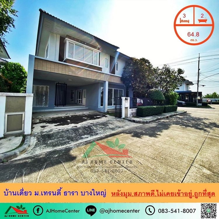 ขายถูก4.89ล้าน บ้านเดี่ยว64.8ตรว. หลังมุม ม.เทรนดี้ ธารา บางใหญ่ สภาพดี ยังไม่เคยเข้าอยู่ จัดกู้ฟรี