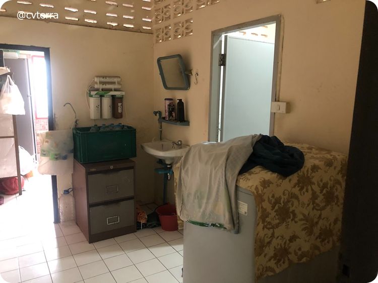 "ตำแหน่งบ้าน บ้านหันหน้าทางทิศเหนือ เกือบสุดซอย ขนาด 22 ตร.ว ขายตามสภาพ สามารถพูดคุยต่อรองราคาได้" มีป้ายหน้าทรัพย์ติดอยู่ที่รั้วบ้าน