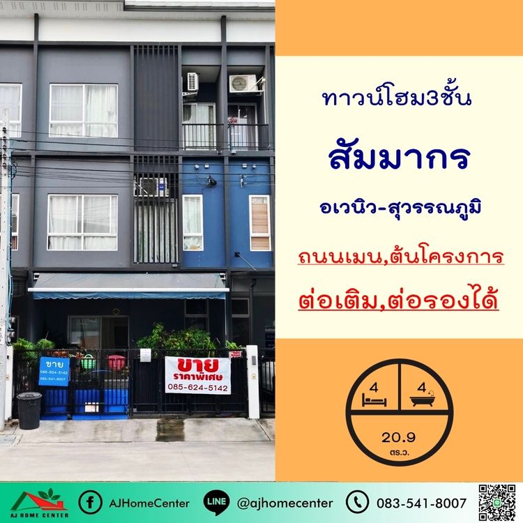 ขายทาวน์โฮม3ชั้น 20.9ตรว. ม.สัมมากร อเวนิว-สุวรรณภูมิ ถนนเมน ต้นโครงการ สวย ต่อเติมครบ