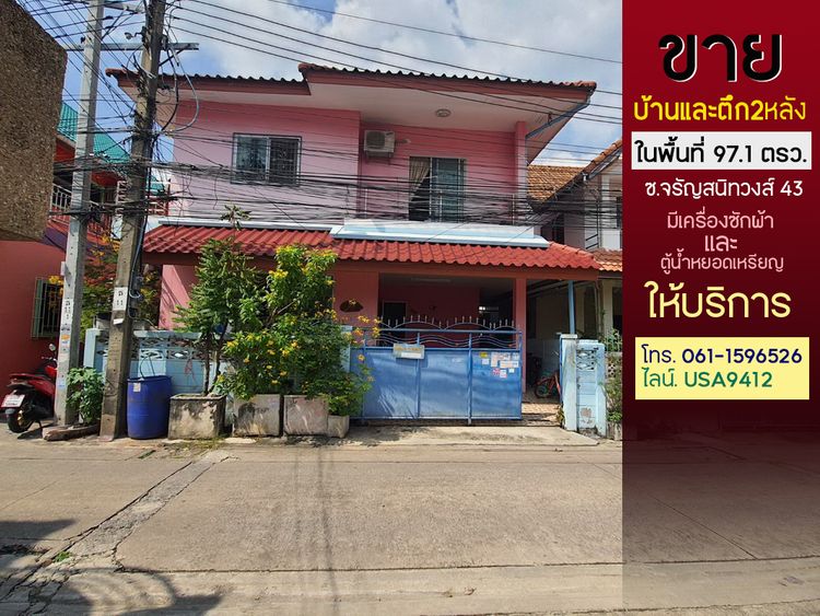 ขายที่ดินพร้อมบ้าน และตึก 2 หลัง ซ.จรัญสนิทวงส์ 43 เข้าซอยเพียง 250 เมตร พื้นที่ 97.1 ตรว. ตึกทำเป็นห้องเช่า มีตู้ซักผ้าบริการ,ตู้น้ำดื่ม
