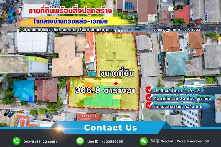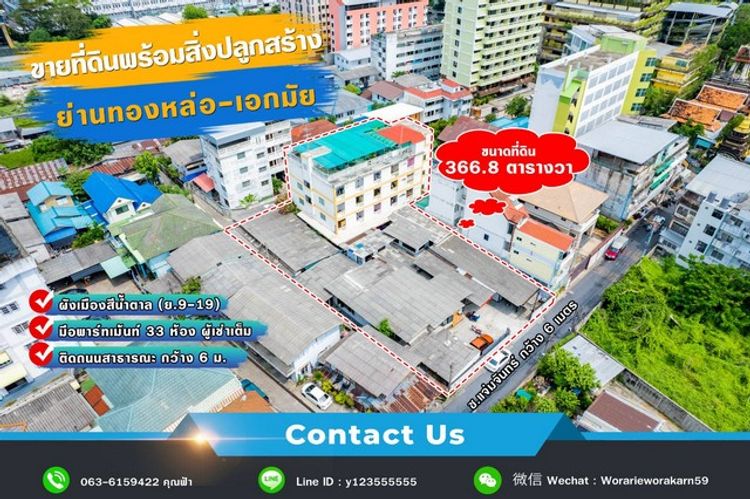 ขายที่ดินพร้อมสิ่งปลูกสร้าง อพาร์ทเม้นท์ 33 ห้อง บ้านไม้ 2 หลัง แขวงคลองตันเหนือ เขตวัฒนา กรุงเทพมหานคร