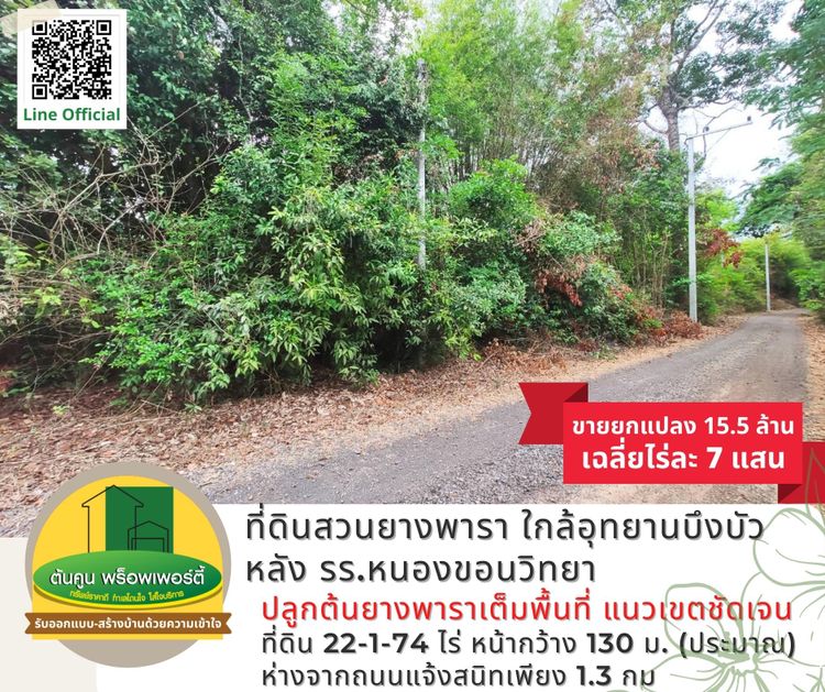• ขายที่ดินสวนยางพารา 22-1-74 ไร่ หลัง รร.หนองขอนวิทยา ใกล้อุทยานบึงบัว หนองช้าง เมืองอุบล, ภาพที่ 1