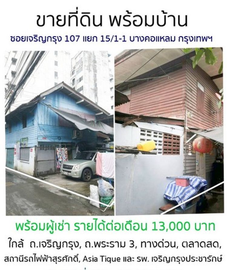 ขาย ที่ดินพระราม 3 แถมบ้าน ใกล้เอเซียทีค BTS สุรศักดิ์ สะพานตากสิน เจริญกรุง 107 บางคอแหลม