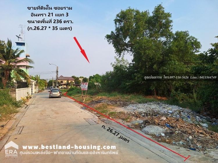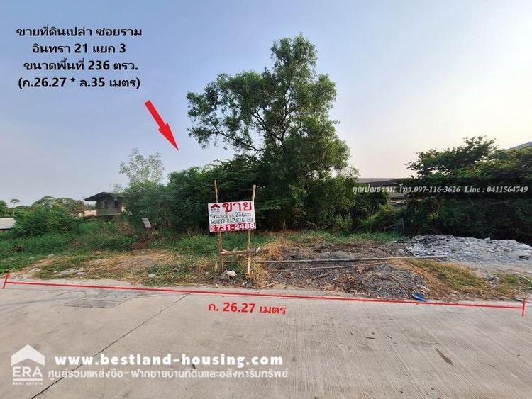 ขายที่ดินเปล่า ทำเลทอง ซ.รามอินทรา 21 แยก 3 แขวงอนุสาวรีย์(ภูบแดง) เขตบางเขน กรุงเทพมหานคร ขนาดที่ดิน 236 ตร.ว. (กว้าง 26.27 *ลึก 35 เมตร, ภาพที่ 2