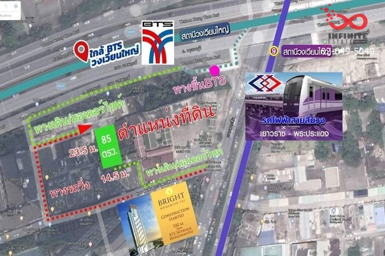 ขายที่ดินเปล่า 85 ตารางวา ถนนกรุงธนบุรี ซอยสมเด็จพระเจ้าตากสิน 8