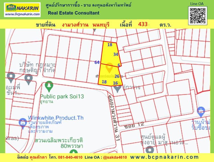 ขายที่ดิน ซ.งามวงศ์วาน เนื้อที่ 433 ตร.ว. นนทบุรี ( 002095 )