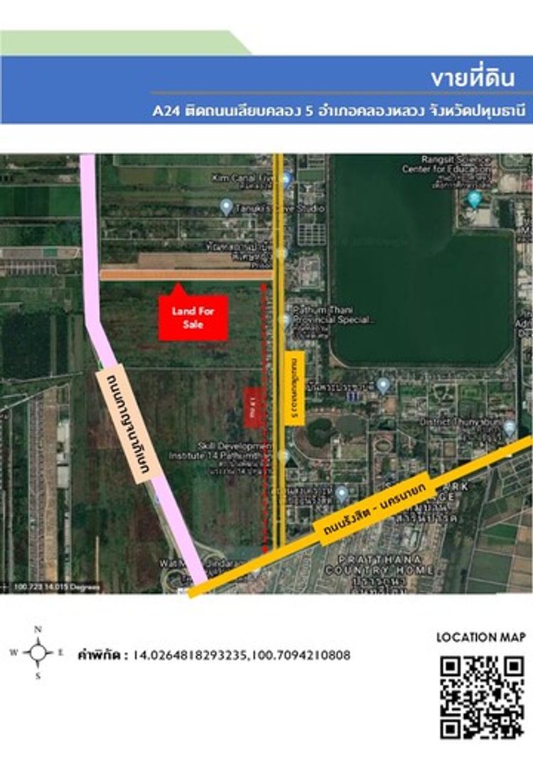 ขายที่ดิน ติดถนนเลียบคลอง 5 อำเภอคลองหลวง จังหวัดปทุมธานี