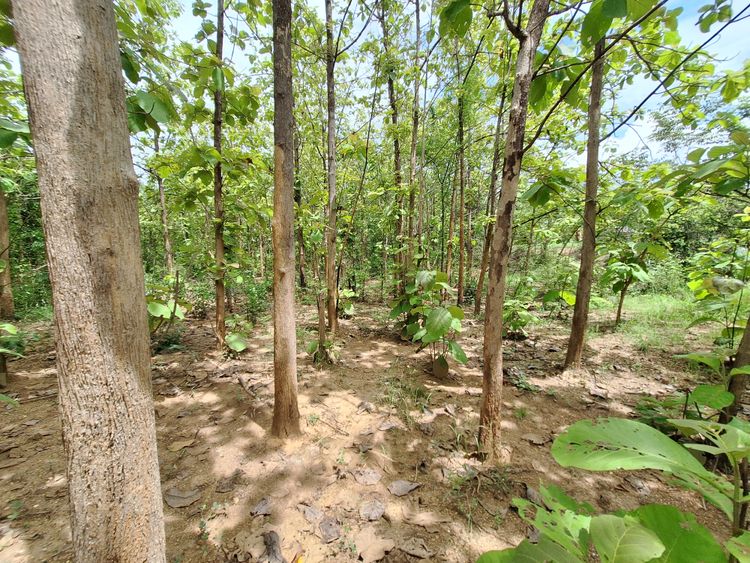 ที่ดินพร้อมต้นสัก ประมาณ 1,000 ต้น และมีบ่อเก็บน้ำ 40x70 ม. ลึก 3 เมตร