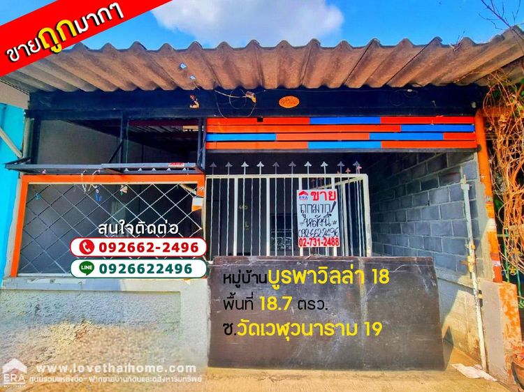 - ทาวน์เฮ้าส์ 1 ชั้น 18.7 ตรว. หมู่บ้านบูรพา 18 ซ.20 ถ.วัดเวฬุวนาราม 19