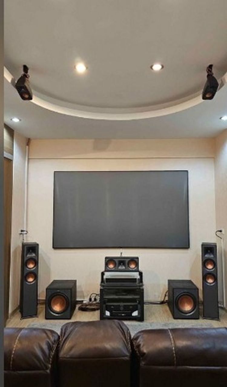 - 1 ห้องโฮมเธียเตอร์ จอ 100 นิ้ว ระบบเสียง Dolby atmos ลำโพง 11 ตัว ราคาหลายแสน ให้ไปด้วยเลย