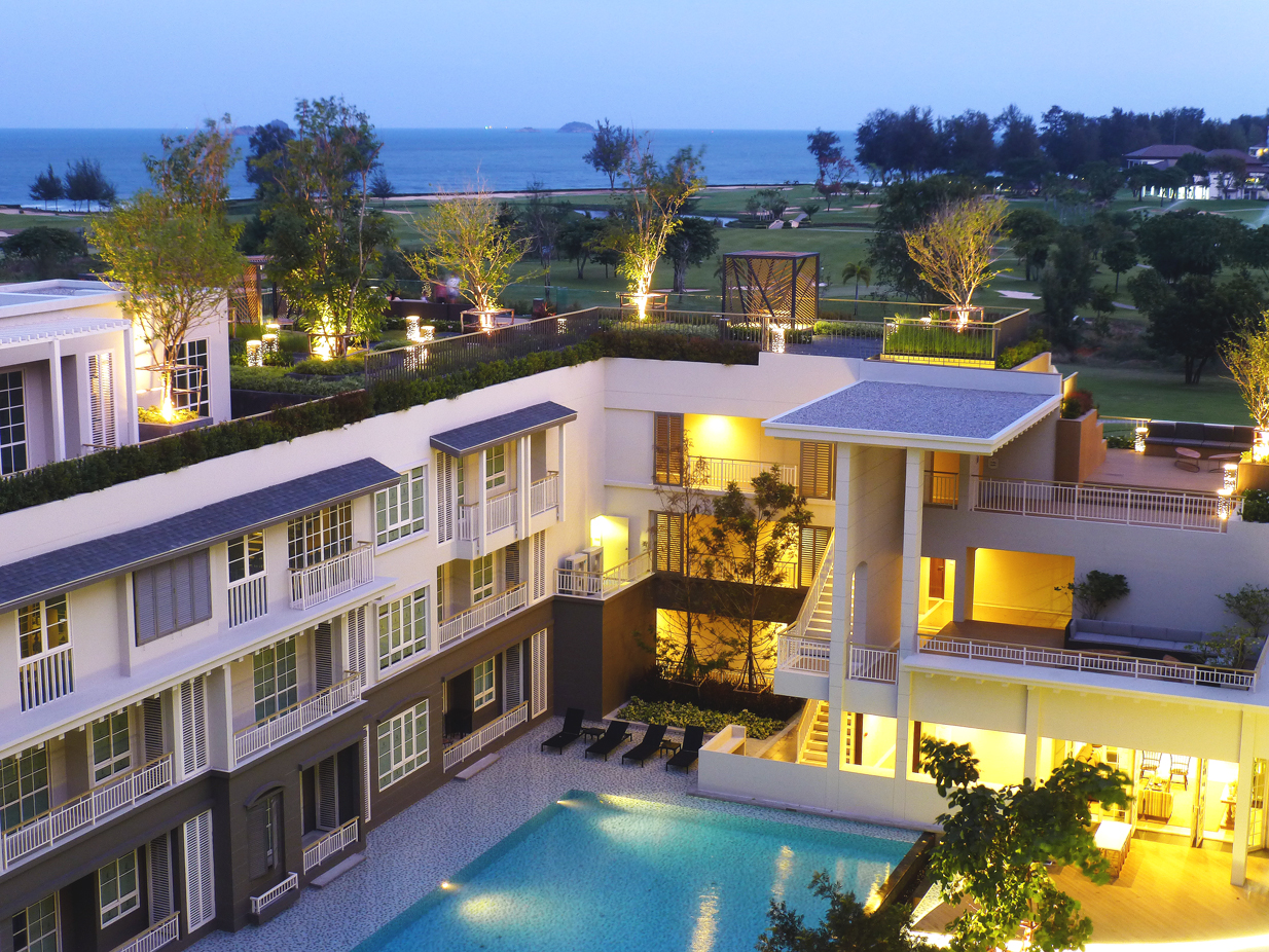 มี roof top garden, sky terrace เปิดโล่ง 360องศา เห็นวิวทิวทัศน์ที่สวยงามทั้ง สนามกอล์ฟ ภูเขา และทะเลหัวหิน เป็นสถานที่ๆมีอยู่จริง โรแมนติกสุดพรรณา