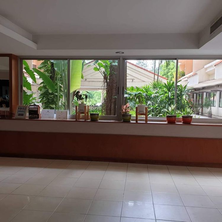 ระเบียงหลังห้องติดกระจก/มุ้งลวด กันนกไว้แล้ว