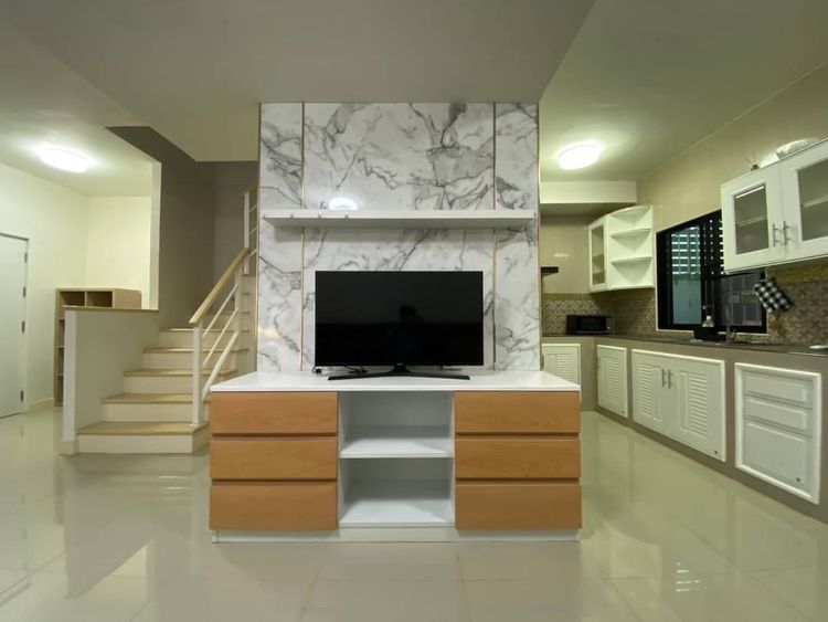 พร้อมเฟอร์นิเจอร์และครัวบิ้วอิน แอร์ 3 ห้องนอนและโถงล่าง เครื่องใช้ไฟฟ้า ตู้เย็น เครื่องซักผ้า เครื่องทำน้ำอุ่น เตาและกลอนดิจิตอล ไฟโซลาเซลหน้าบ้าน