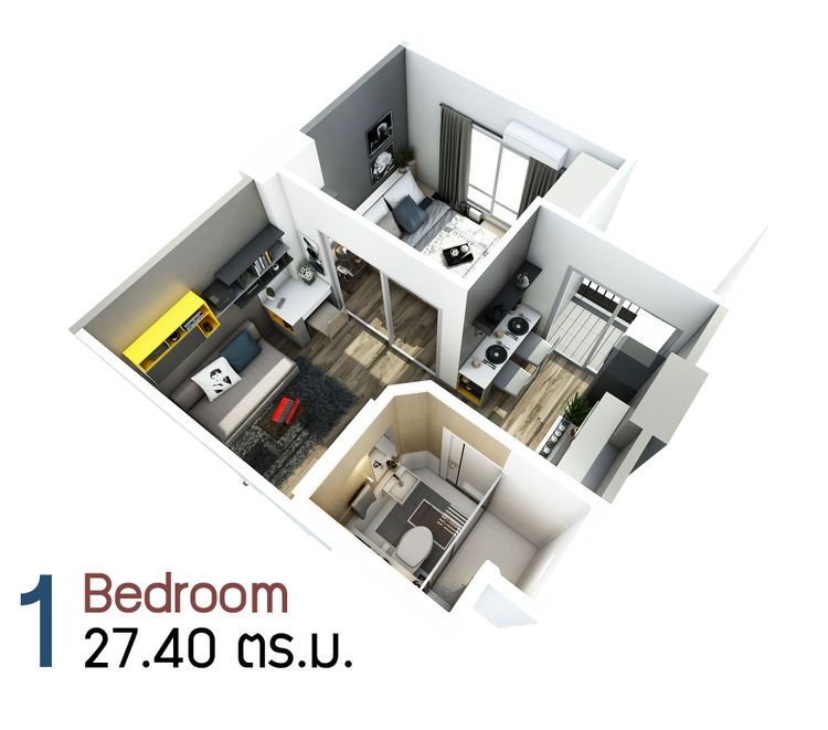 ขายคอนโด ขนาด 27.4 ตารางเมตร 1 ห้องนอน 1 ห้องน้ำ 1 ห้องนั่งเล่น ชั้น 3 อาคาร B ไม่ผ่านนายหน้า