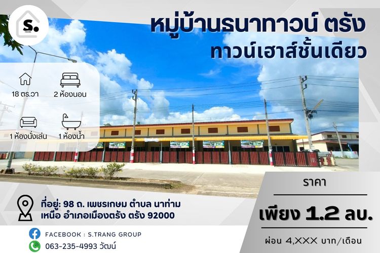 • ขาย ทาวน์โฮม ชั้นเดียว โครงการ ธนาทาวน์ ตำบลนาท่ามเหนือ อำเภอเมืองตรัง จังหวัดตรัง, ภาพที่ 1