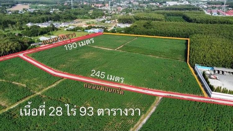 - ที่ดินติดถนน 2 ด้าน ติดคอนกรีต หน้ากว้าง 245 เมตร ถนนลาดยาง 190 เมตร