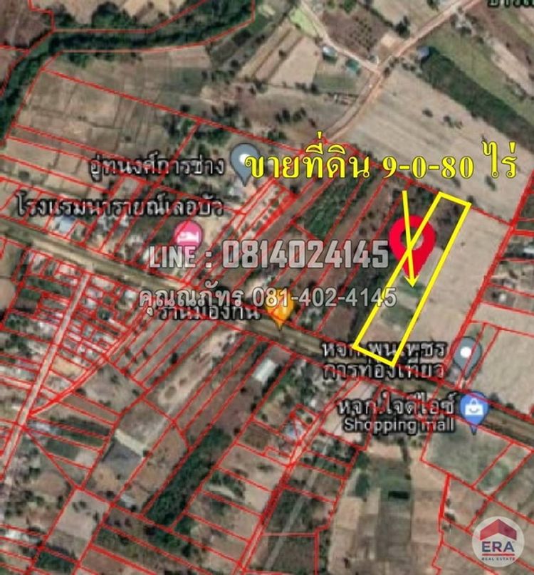 ขายที่ดินเปล่า 9-0-80 ไร่ ถ.สมเด็จ-มุกดาหาร ที่ดินติดถนนทางหลวงสายเอเชีย12