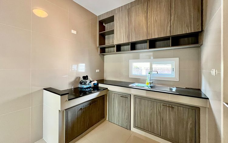 ● 1 ห้องครัว เคาท์เตอร์พร้อมซิงค์ล้างจาน ตู้เก็บของบิวท์อิน