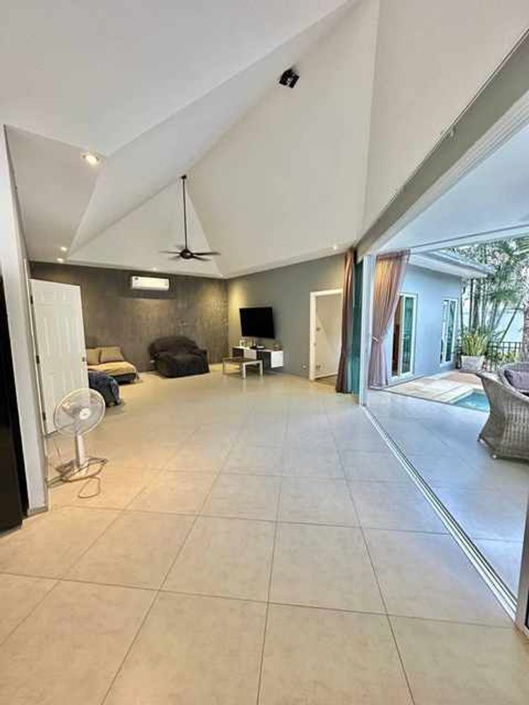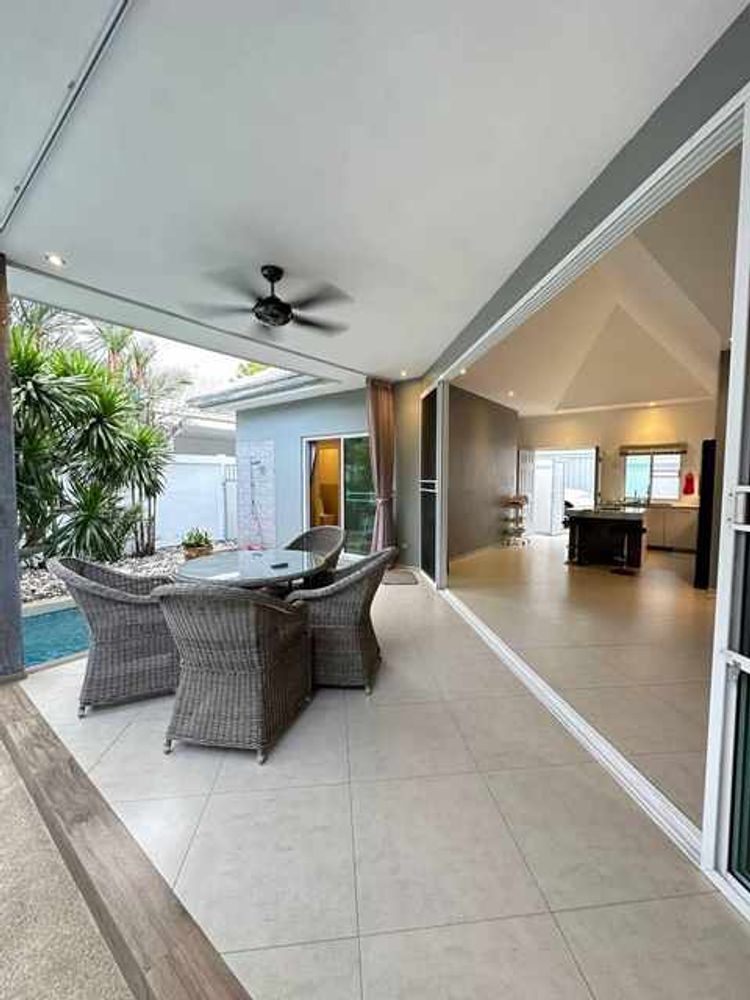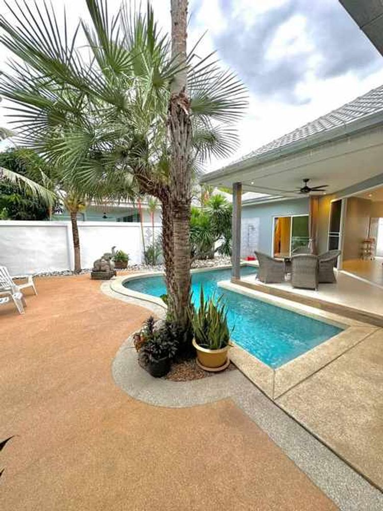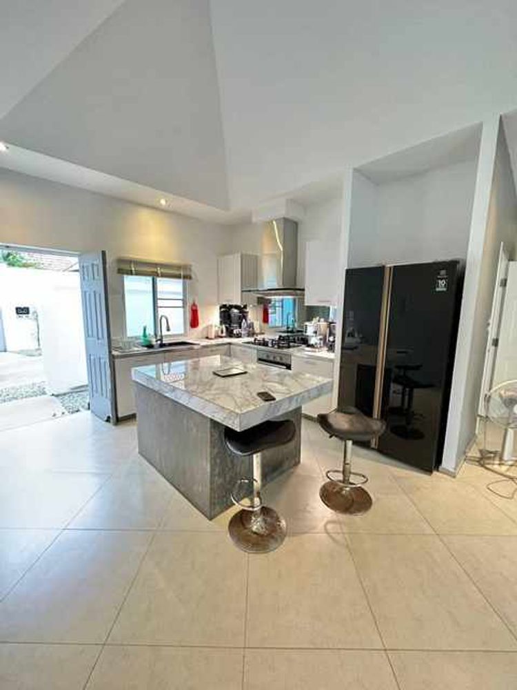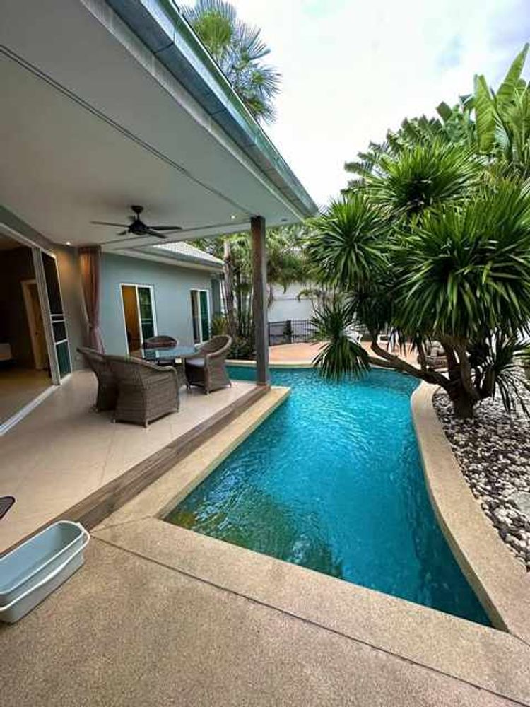 #H318 Pool Villa For Sale 2 Beds Huay Yai Fully Furnished, Electric appliances (Stove, Oven, Microwave, washing machine etc.,) Open European Kitchen with Island. 2 Bedrooms 3 Bathrooms Land Size: 86 sq.w Location: 3 Km. from Huay Yai Templae and easy access to Motorway.