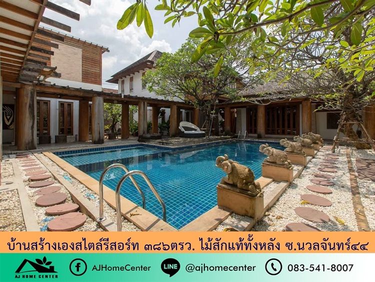 ขายบ้านเดี่ยวสไตล์รีสอร์ท ขนาด386ตรว. ซ.นวลจันทร์44 โครงสร้างและการตกแต่งใช้ไม้สักแท้ทั้งหลัง
