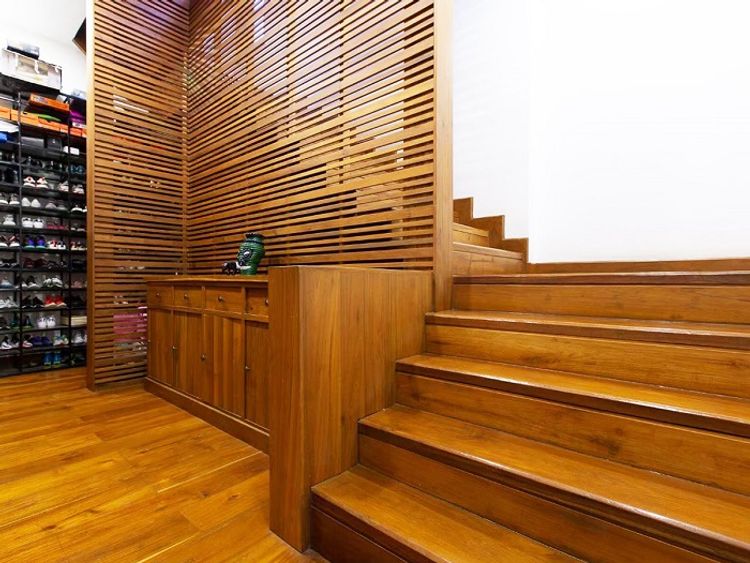 --- บันไดขึ้นสู่ชั้น 2 เป็น บันไดไม้สักแท้ หน้าไม้12นิ้ว