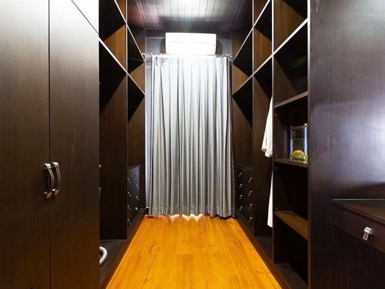 >> ห้องใหญ่มาก สามารถเก็บเสื้อผ้าได้เยอะ มีชั้นวางกระเป๋า บิวท์อินลิ้นชักเคาน์เตอร์กลางห้อง สามารถเก็บเครื่องประดับได้