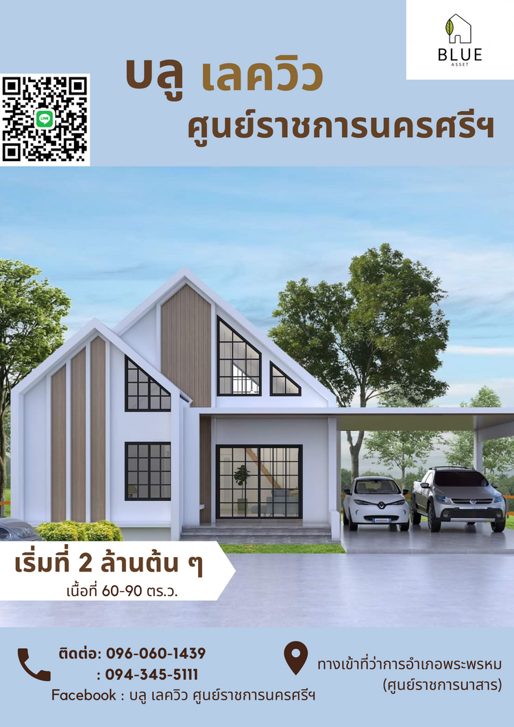 ขาย บ้าน ในโครงการ บลู เลควิว ศูนย์ราชการนครศรีฯ ตำบลนาสาร อำเภอพระพรหม จังหวัดนครศรีธรรมราช