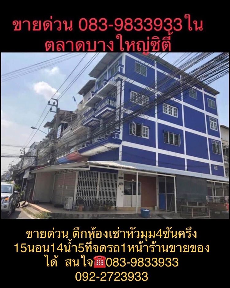 ขายด่วน ตึกห้องเช่าหัวมุมในใจกลางตลาดบางใหญ่ซิตี้ 2คูหาได้เสริมหลังตึกไว้และแบ่งส่วนหน้าร้านกับห้องเช่าไว้อย่างดี ชั้น1กับชั้นลอยจัดเป็นสวนตัวของหน้านร้านมี3ห้องนอน2น้ำ5จอดรถได้ สามารถเปิดร้านได้สบายๆและดูเลตึกได้เลย ส่วนขั้น3’2ขึ้นไปเป็นห้องเช่า มีทางเจ้าหลังตึกโดนไม่ต้องผ่านหน้าร้านค่ะ ห้องเช่ามี12ห้อง11น้ำค่ะ ท่านใดสนใต☎️083-9833933 092-2723933 ...