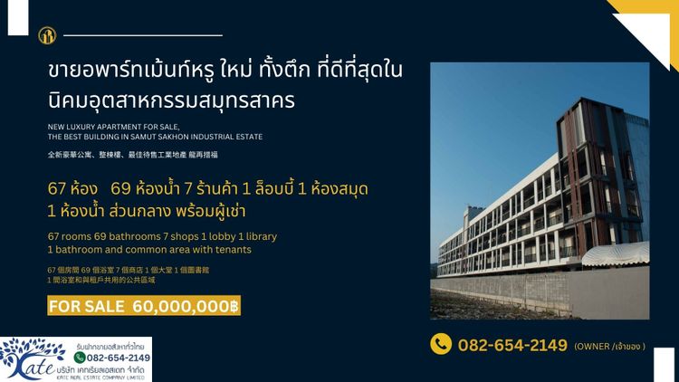 ขายด่วน!!! อพาร์ทเม้นท์หรูใหม่ ทั้งตึก ที่ดีที่สุดในนิคมอุตสาหกรรมสมุทรสาคร