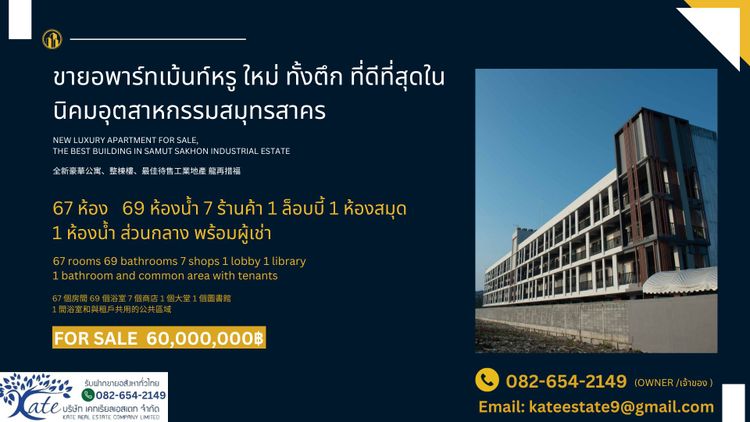 ขายด่วน!!! อพาร์ทเม้นท์หรูใหม่ ทั้งตึก ที่ดีที่สุดในนิคมอุตสาหกรรมสมุทรสาคร