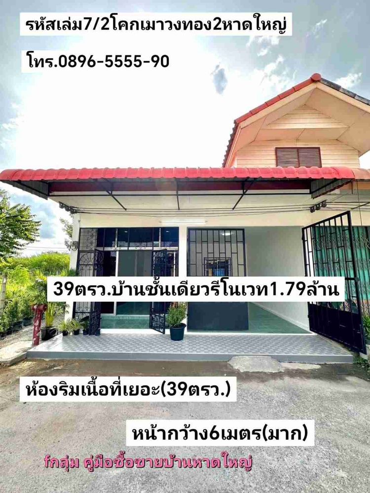 • คู่มือซื้อขายบ้านหาดใหญ่ บ้านชั้นเดียวรีโนเวท 39ตรว.(มาก) กว้าง6เมตร(มาก) โคกเมาวงทอง2 หาดใหญ่ ขาย1.79ล้านบาท, ภาพที่ 1