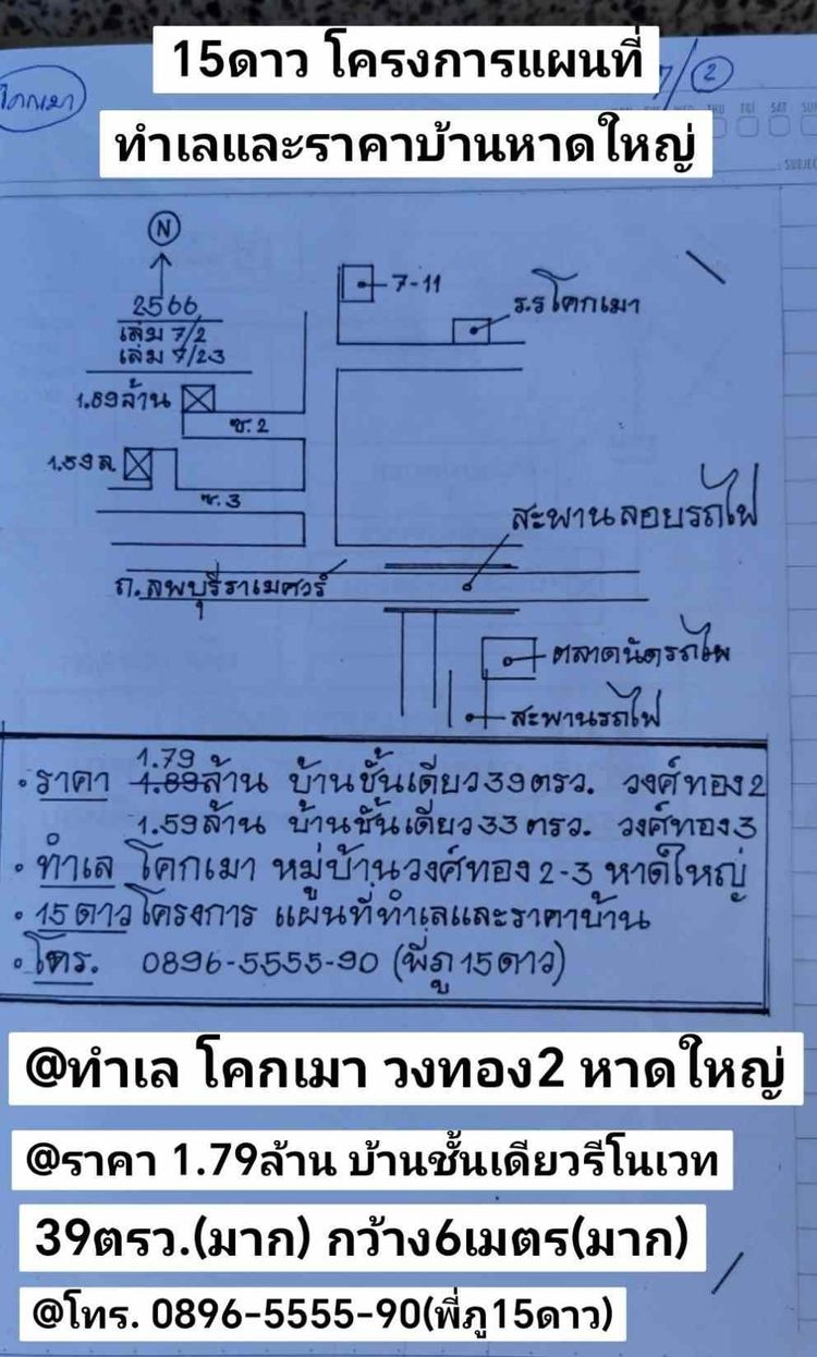 @ลักษณะของบ้าน #บ้านชั้นเดียวรีโนเวท 39.1ตรว.(มาก) กว้าง6เมตร(มาก) ลึก19เมตร 2นอน 1น้ำ 1จอดรถ เคาน์เตอร์ครัว @ที่ตั้ง จากถนนข้างวัดหาดใหญ่ใน ไปตามเส้นทางบางแฟบถึงลพบุรีราเมศวร์ ยูเทิร์นหันหน้าไปทางสะพานลอยโคกเมา ใช้ถนนข้างสะพาน เลี้ยวซ้ายถนนโคกเมา 300เมตร เลี้ยวซ้ายซอยวงทอง2 สุดซอย บ้านอยู่ขวามือ. ที่นี่แหละ!