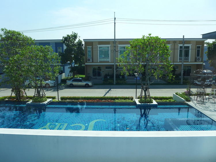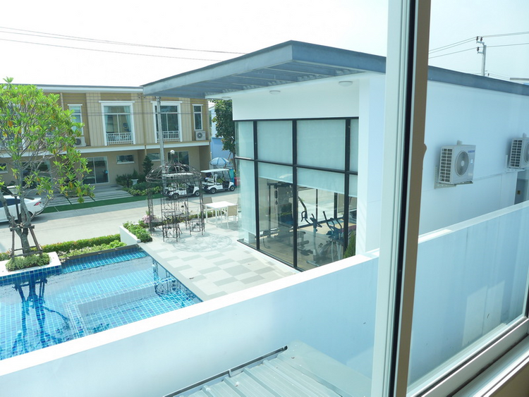 - ทำเลอยู่ที่ด้านหน้าโครงการเลยตัวบ้านด้านหลังติดอยู่กับ ฟิตเนสและสระว่ายของโครงการ